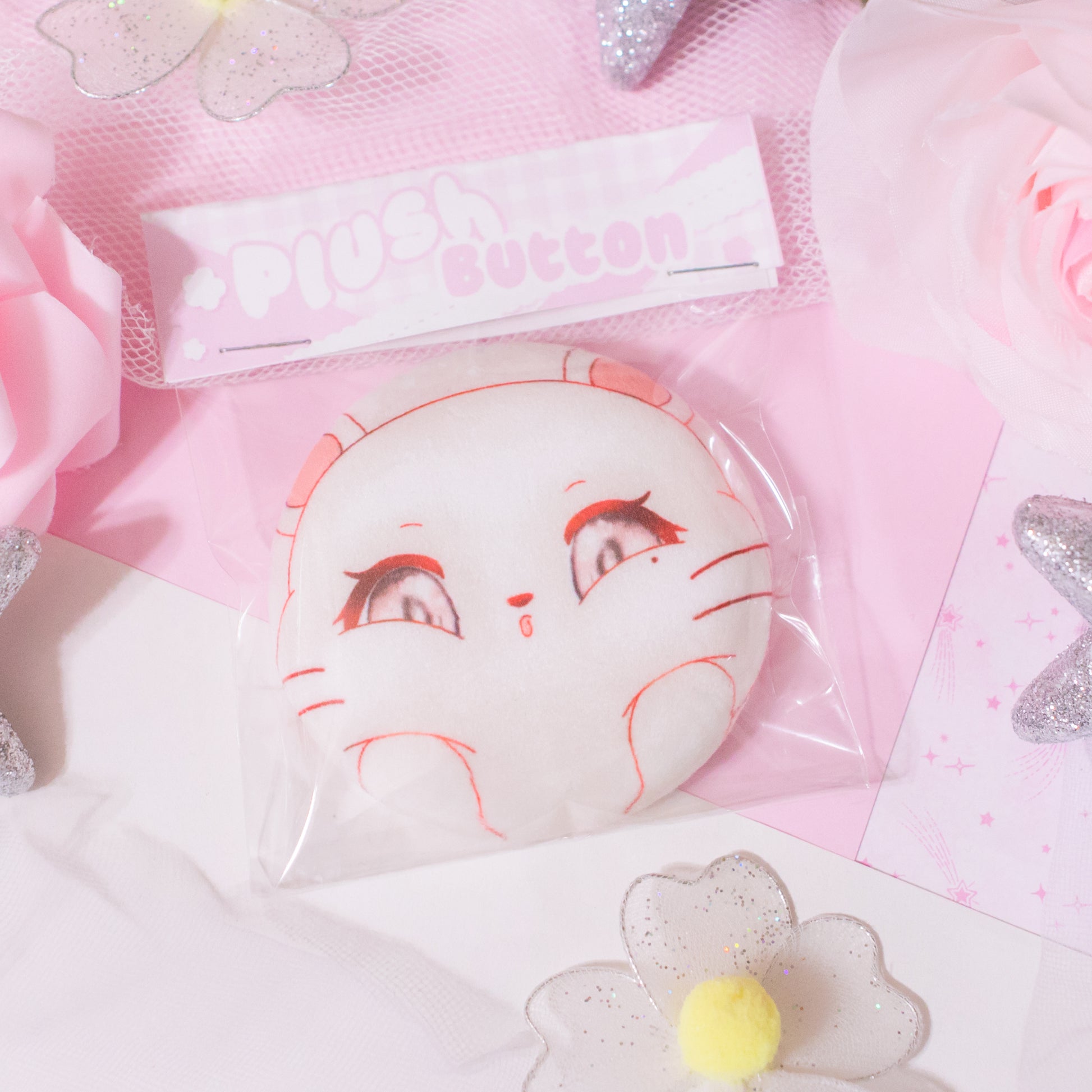 Squish SKZoo's soft cheeks with these adorable plush buttons! These buttons are soft and velvety, perfect for playing with, and offer a satisfying cheek squish!